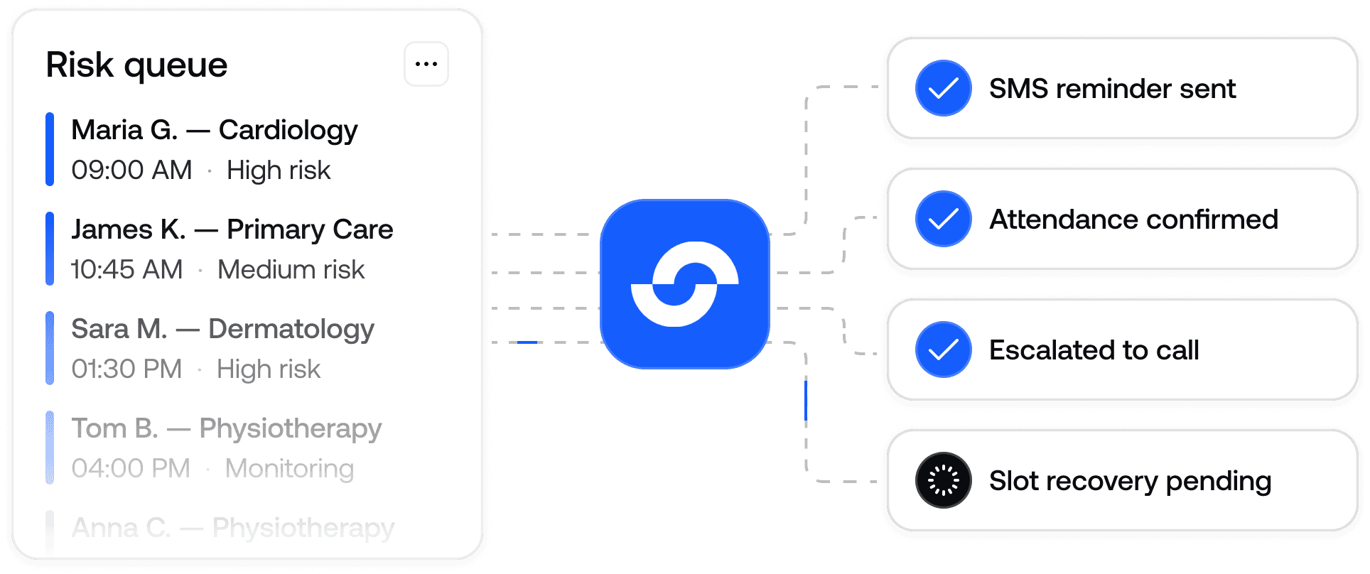 Primary care clinics, specialist practices, and health systems that lose revenue and capacity to no-shows. If your team spends hours on manual reminder calls or struggles with empty slots, Sund was built for you.